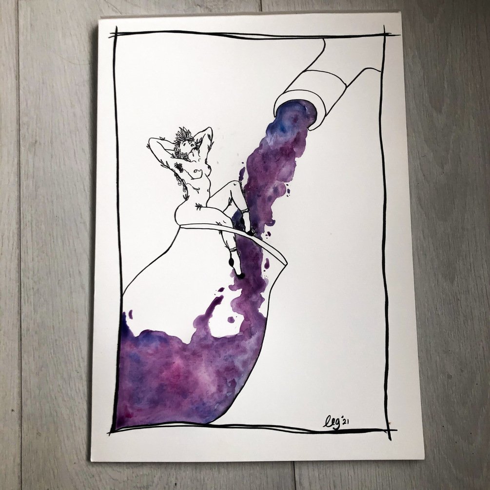 This is the original, water color and marker drawing on A3. You will be the only one who owns it, there are no copies. It makes a great gift, looks great in your kitchen or wine cellar, and serves to remind you to be gentle with yourself.